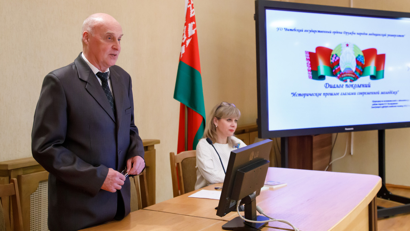 21 февраля 2023 года в рамках университетских мероприятий, посвящённого подведению итогов Года исторической памяти и празднованию Дня защитника Отечества и Вооруженных Сил Республики Беларусь, заведующий кафедрой анатомии человека профессор А.К. Усович организовал для студентов младших курсов в рамках дискуссионной площадки «диалог поколений» мероприятие на тему «Историческое прошлое и настоящее глазами современной молодёжи».