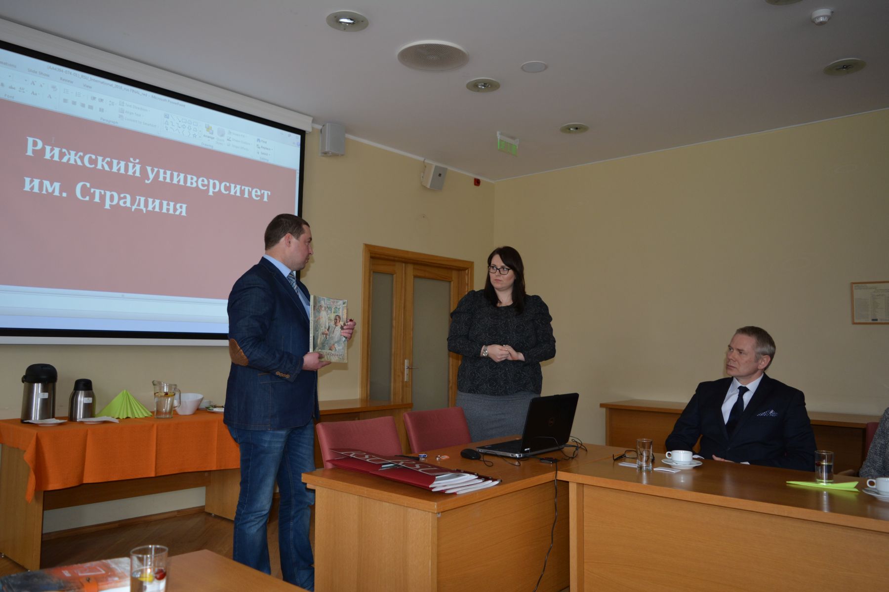 Следующим важным пунктом образовательной программы было посещение Рижского университета имени П. Страдиня (РУС; бывшая Латвийская медицинская академия) организованное по инициативе Консульства Латвийской Республики в Витебске и лично консула Угиса Скуя. Преподаватели приняли участие в круглом столе с руководством отдела по программам обмена РУС, деканами факультетов медицины, стоматологии, европейских исследований. Для студентов в это время была организована образовательная экскурсия по университету.