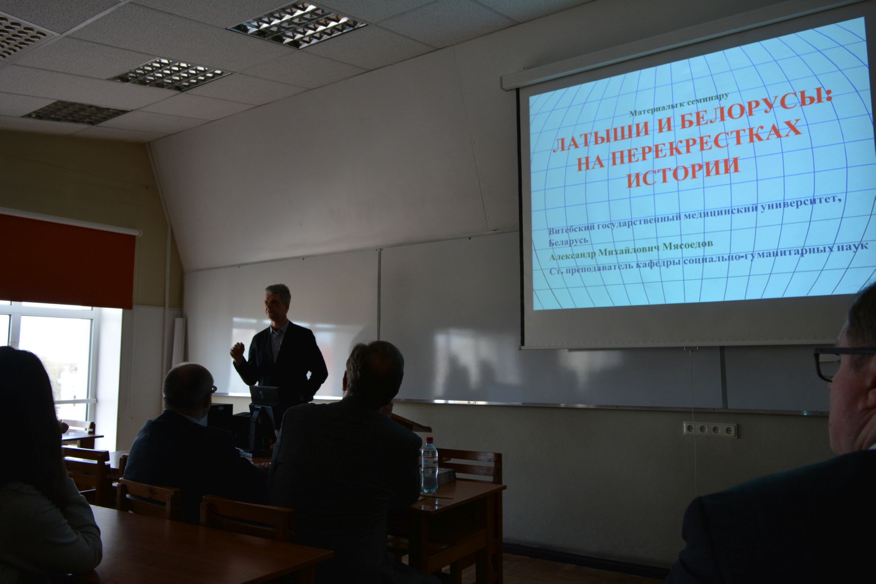 Данное мероприятие было организовано в рамках реализации Соглашения о сотрудничестве УО «Витебский государственный ордена Дружбы народов медицинский университет» с Латвийским университетом, а также совместного проекта «Латыши и белорусы: вместе сквозь века» кафедры социально-гуманитарных наук УО «ВГМУ» и историко-философского факультета Латвийского университета.