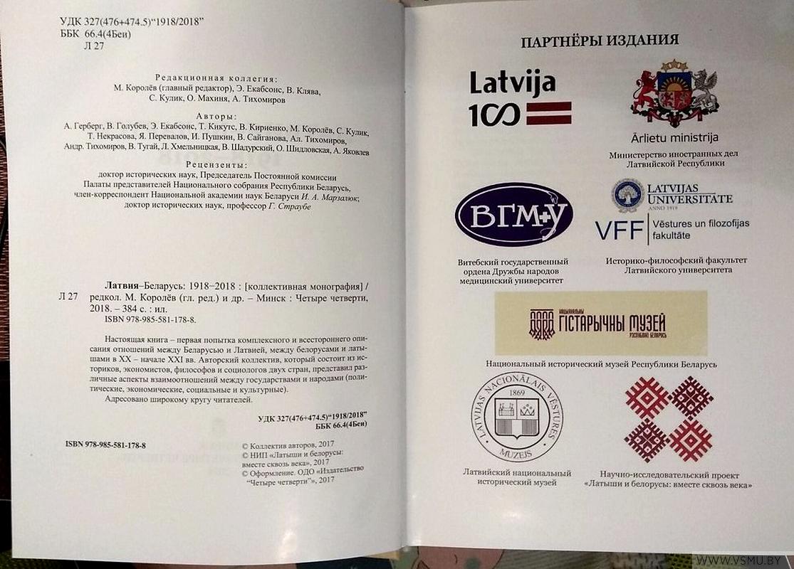 16 апреля на Историко-философском факультете ЛУ прошёл круглый стол, на котором была представления коллективная монография «Латвия−Беларусь: 1918−2018», ставшая результатом совместной работы белорусских и латвийских исследователей. После состоялась беседа преподавателей ВГМУ с деканом факультета Валдой Клява и профессором Эриком Екабсоном. На обоих мероприятиях присутствовали советник-посланник Посольства Республики Беларусь в Латвийской Республике А.К. Матюхевич и руководитель Консульства Латвийской Республики в Витебске У. Скуя. Студенты же нашего университета вечером того же дня по приглашению студенческого самоуправления ЛУ имели возможность пообщаться с латвийскими студентами в неформальной обстановке в фолк-клубе Ala.