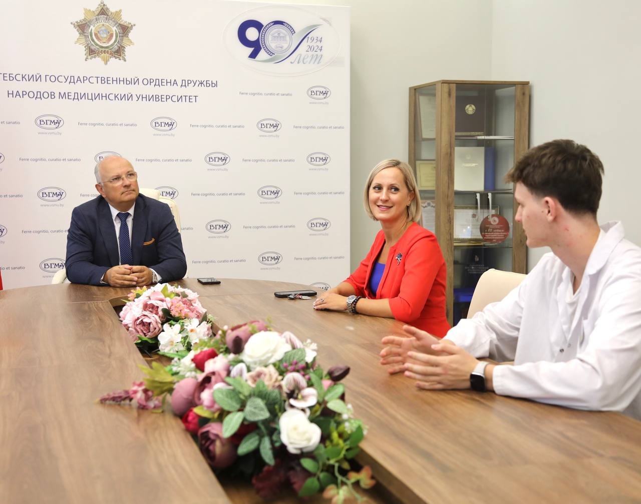 5 сентября 2025г. состоялась встреча ректора ВГМУ Алексея Чуканова со студентами – участниками Летней школы-2025 в городе Самарканд, Республика Узбекистан. Во встрече также приняла участие начальник управления международных и межрегиональных связей Елена Шарыхина.