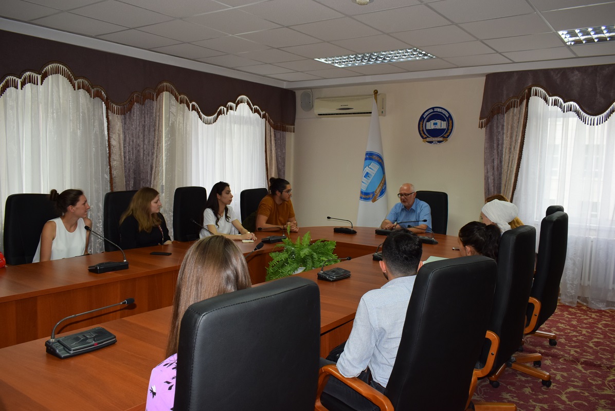 На второй день пребывания на базе практики, группа встретилась с ректором медицинского университета Астана, доктором медицинских наук, профессором, Дайнюсом Павалькисом. В ходе беседы студенты узнали об основных направлениях деятельности в процессе улучшения университета, а также выразили надежду о дальнейшем плодотворном сотрудничестве между университетами.
