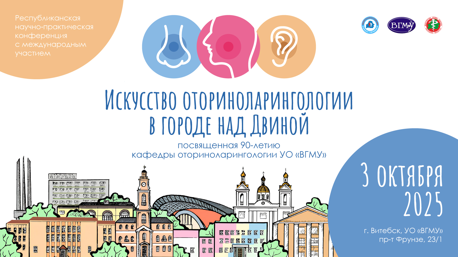 03.10.2025 на базе Витебского государственного медицинского университета состоится Республиканская научно-практическая конференция с международным участием «Искусство оториноларингологии в городе над Двиной», посвященная 90-летию кафедры оториноларингологии ВГМУ.