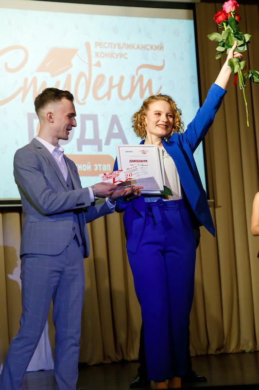 15 декабря 2021 года в актовом зале Витебского государственного технологического университета прошёл областной этап республиканского конкурса «Студент года-2021». В числе участников этого яркого шоу была и Виктория Шамко, студентка 3 курса фармацевтического факультета ВГМУ. Участники конкурса состязались в трёх разделах программы: «Визитка», «Ораторское искусство» и «Творческий номер».