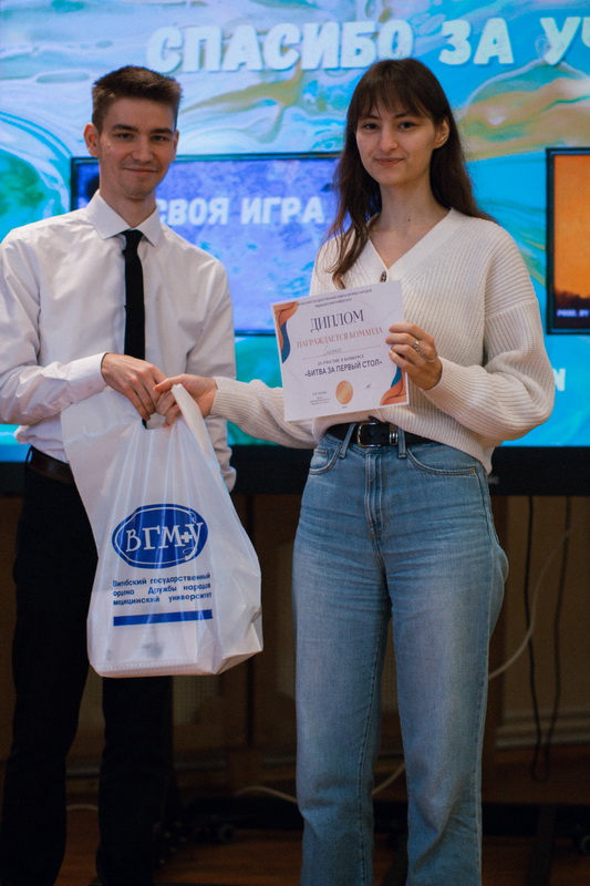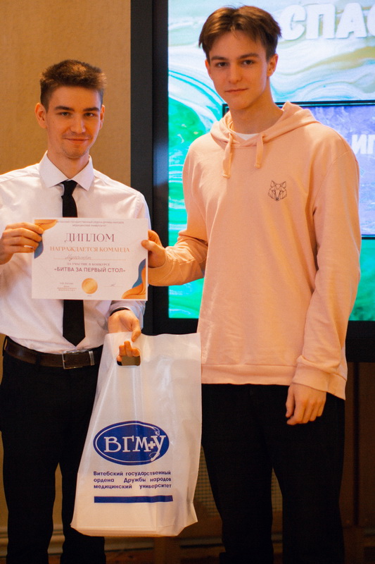 Все участники получили дипломы и призы ректора университета, а тройка победителей - особые призы, предоставленные спонсорами – ПО ОО «БРСМ» ВГМУ с правами РК и кофейня самообслуживания «Кофе саунд».