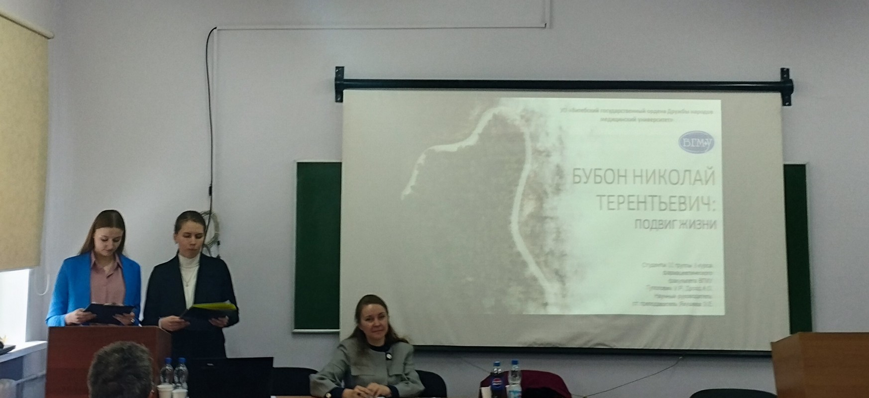 Студенты 3 курса фармацевтического факультета учреждения образования «Витебский государственный ордена Дружбы народов медицинский университет» Гуполович Ульяна и Дрозд Анна под руководством старшего преподавателя кафедры фармацевтической и токсикологической химии Якушевой Элеоноры Евгеньевны подготовили доклад «Бубон Николай Терентьевич: подвиг жизни» и приняли участие в работе конференции по направлению «Сохранение памяти о жертвах и подвиге советского народа на территории Республики Беларусь».