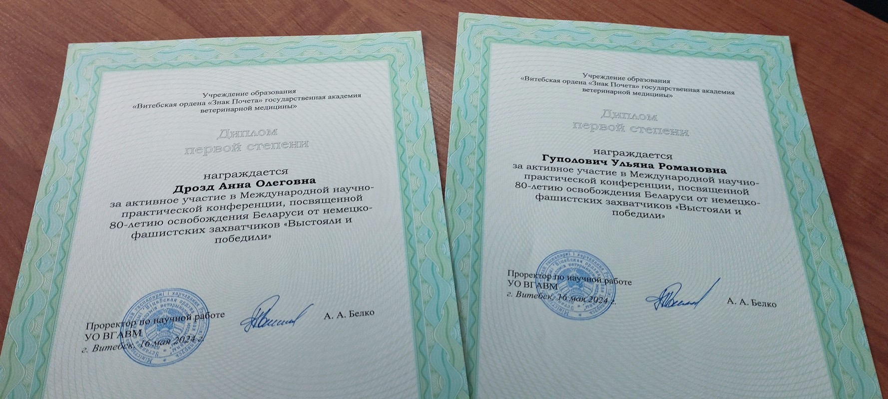 16 мая 2024 года в соответствии с планом мероприятий научно-образовательного кластера «Медицина и фармацевтика – инновационные проекты» на базе учреждения образования «Витебская ордена «Знак Почета» государственная академия ветеринарной медицины» состоялась Международная научно-практическая конференция учащихся, студентов и магистрантов «Выстояли и победили», посвященная 80-летию освобождения Беларуси от немецко-фашистских захватчиков.