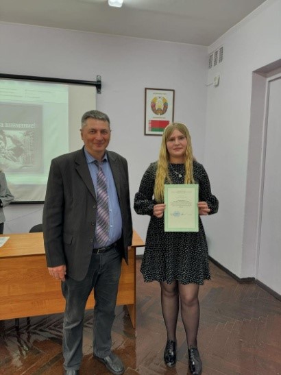 В конференции приняли участие студенты 1-го курса лечебного факультета УО ВГМУ, которые получили дипломы I степени. Перемота Алина выступила с докладом «Их жизнь оборвала война», посвященным вкладу в Великую победу ее земляков из аг. Полошково. Доклад Мусиевской Ксении «Победа в лицах» посвящен жизни в военные годы одного из сотрудников УО ВГМУ, бывшего заведующего кафедрой общественного здоровья и здравоохранения И.П. Мордачёва. Доклады подготовлены под руководством Ковалевской Татьяны Николаевны, старшего преподавателя кафедры общественного здоровья и здравоохранения с курсом ФПК и ПК.