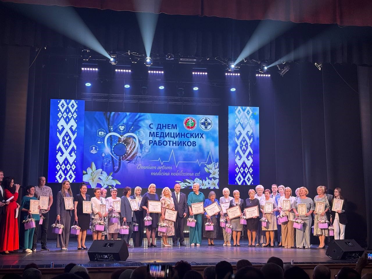 11 июня 2025 года в Полоцке состоялось областное торжественное мероприятие, посвященное Дню медицинских работников. В мероприятии приняли участие делегации участников кластера: ВГМУ во главе с ректором А.Н. Чукановым и Витебского УП «Фармация» во главе с генеральным директором Е.С. Борисеевич. ВГМУ была организована выставка инновационных разработок сотрудников университета в области медицины и фармации. Заместитель Министра здравоохранения Республики Беларусь Б.Н. Андросюк вручил Благодарности Министра здравоохранения работникам ВГМУ и Витебского УП «Фармация». Ректор ВГМУ А.Н. Чуканов вручил почетные грамоты университета работникам практического здравоохранения.