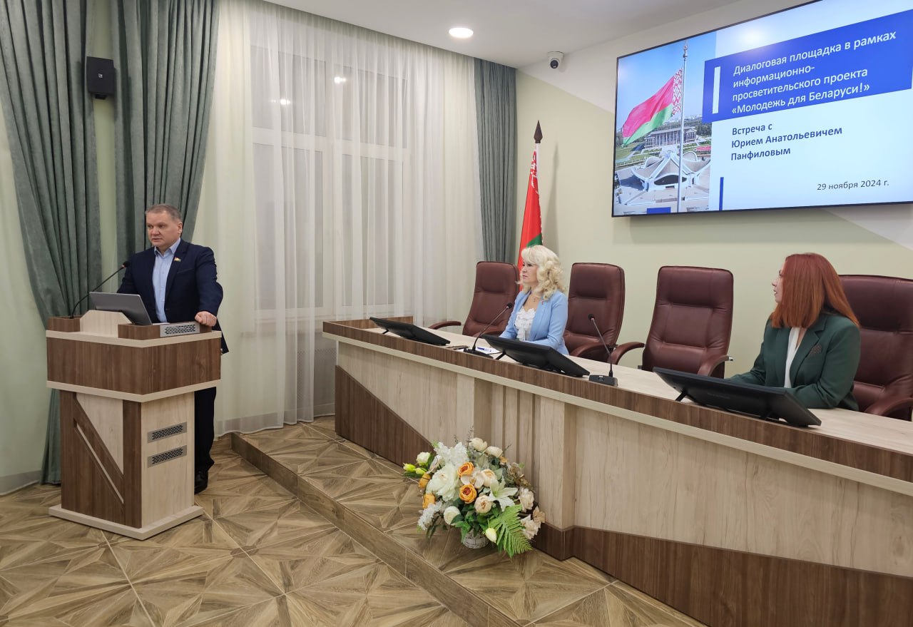 29 ноября 2024 года в рамках проведения информационно-просветительского проекта Палаты представителей «Молодежь для Беларуси!» председатель Постоянной комиссии по промышленности, энергетике, транспорту, связи и цифровому развитию Палаты представителей Национального собрания Республики Беларусь Панфилов Юрий Анатольевич провел диалоговую площадку со студентами и преподавателями педиатрического факультета Витебского государственного медицинского университета.
