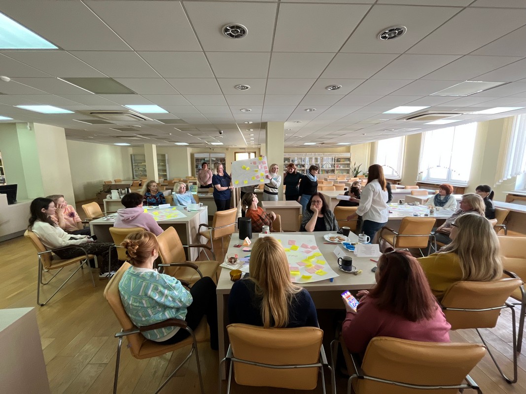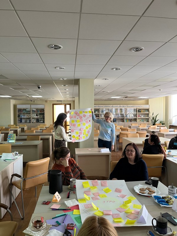 28 марта состоялась очередная встреча сотрудников университетской библиотеки с сотрудниками СППС. Коллектив библиотеки на практике изучил такой метод работы с группой как World cafe, поставил перед собой 4 креативные задачи, решение которых помогло систематизировать и проанализировать опыт каждого сотрудника, сформулировать золотые правила библиотекаря. Горячий чай, вкусности и приятная музыка помогали творческому процессу.