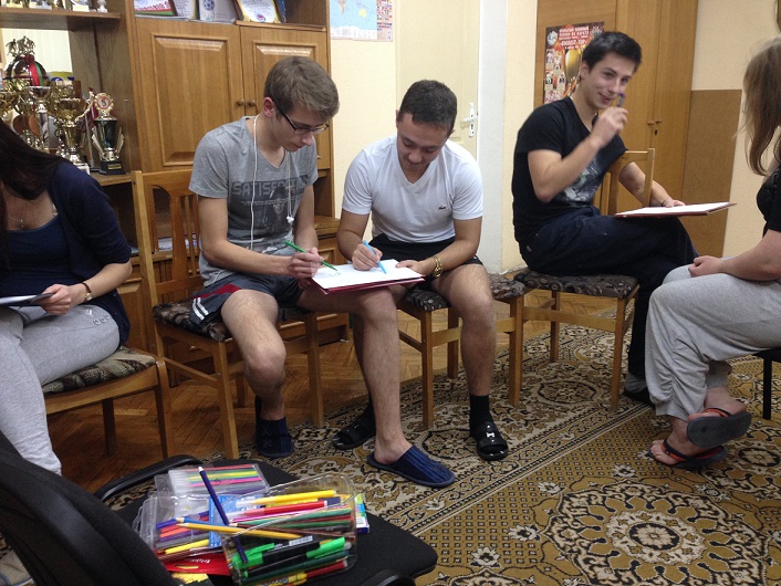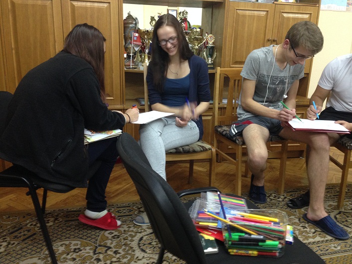 21 октября в общежитии №5 прошла встреча сотрудников СППС (педагог-психолог Рябцева Н.А., педагог-психолог Романовская А.П.) со студентами. Участникам занятия была предоставлена возможность поисследовать себя через рисунок. Встреча началась с упражнения «Нарисуй свое имя». Затем участники работали в парах. Данное упражнение проходило в форме диалога без слов, с помощью рисунка. А в завершении каждый ушел со своим портретом, который представляет собой собирательный образ участников группы.