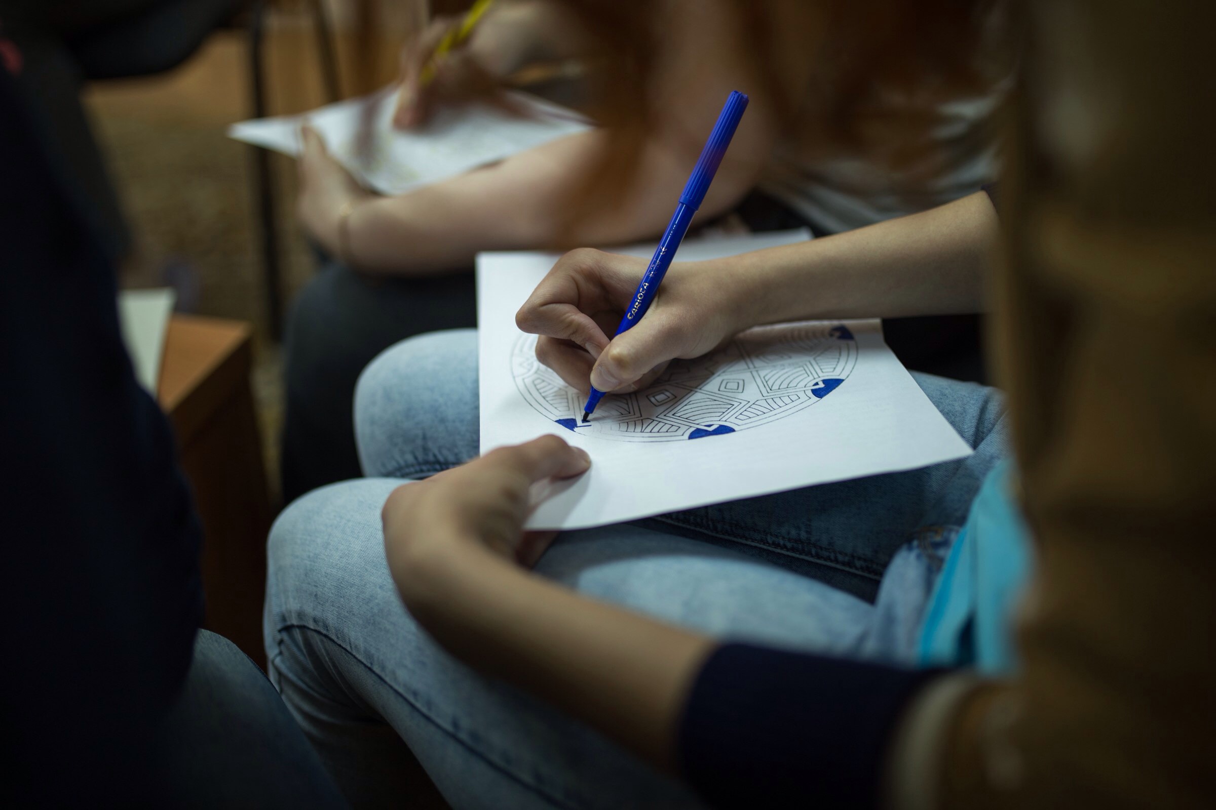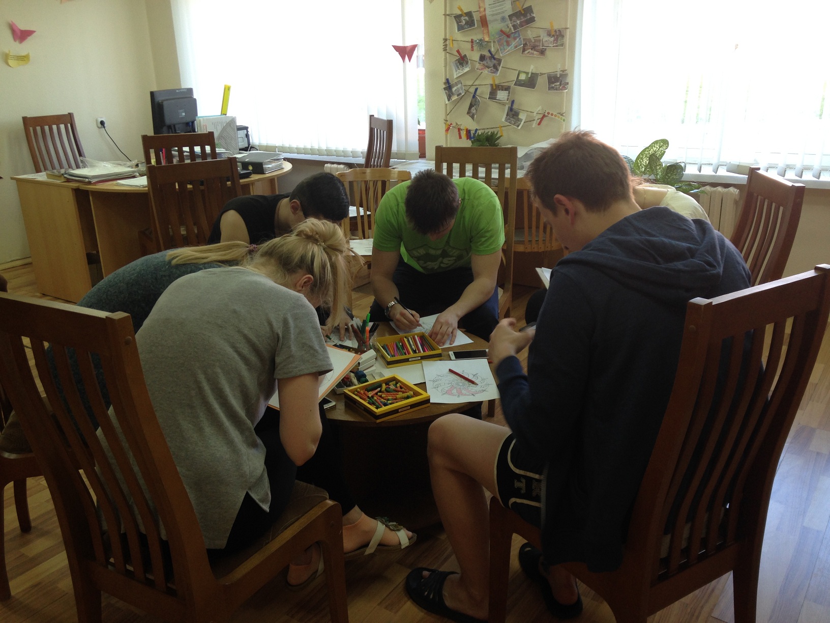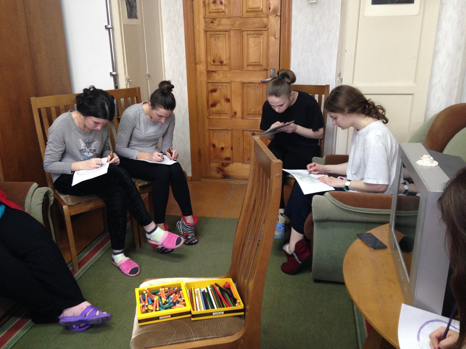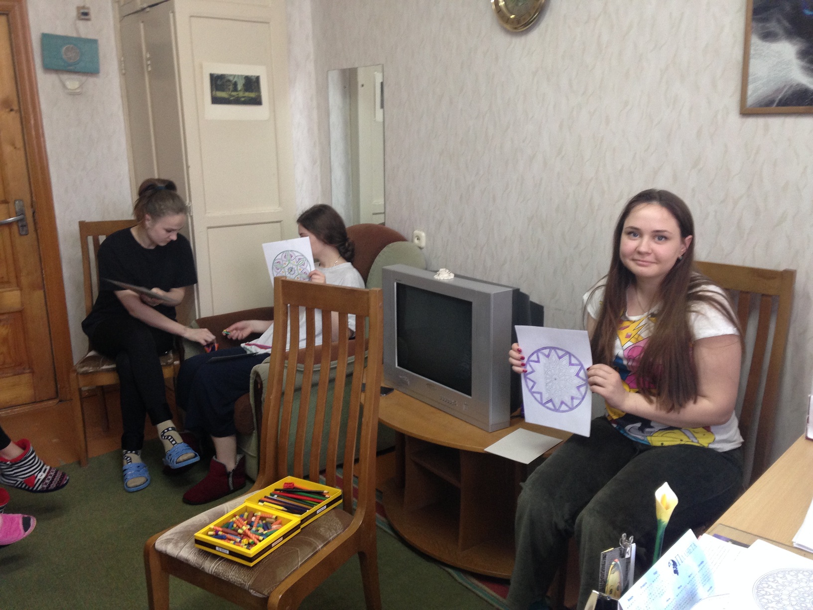 Для исследования межличностных взаимоотношений и конфликтов ребятам было представлено упражнение «Рисование с партнером». Задача состояла в том, чтобы пообщаться с партнером с помощью линий, форм и цвета. Далее педагоги-психологи познакомили студентов с таким методом арт-терапии как мандала-терапия. Сама идея арт-терапии и диагностика методом мандала принадлежит швейцарскому психиатру, основоположнику одного из направлений аналитической психологии Карлу Гюставу Юнгу. В конце занятия для исследования ценностных ориентаций, взаимоотношений, сотрудничества и соперничества членов группы было предложено упражнение «Сотворение мира». С закрытыми глазами ребята создавали из пластилина скульптуру, выражающую мысли и чувства возникающие в процессе лепки. Затем совместно с группой с открытыми глазами структурировали «целостный мир» из получившихся скульптур... В заключение участники поделились своими впечатлениями и положительными эмоциями!
