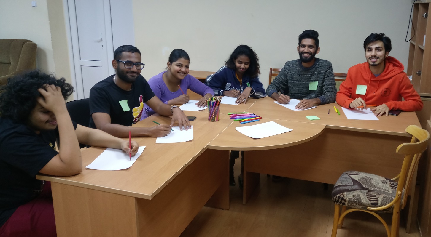 Чтобы познакомить иностранных студентов с таким методом снятия стресса, 20 и 22 ноября были проведены занятия с элементами арт-терапии на базе общежитий №1 и №6. В рамках занятий участники вместе с ведущим разобрали понятие «стресс», проговорили основные способы борьбы со стрессом. Затем участники выразили на бумаге свое настроение, мысли и переживания.