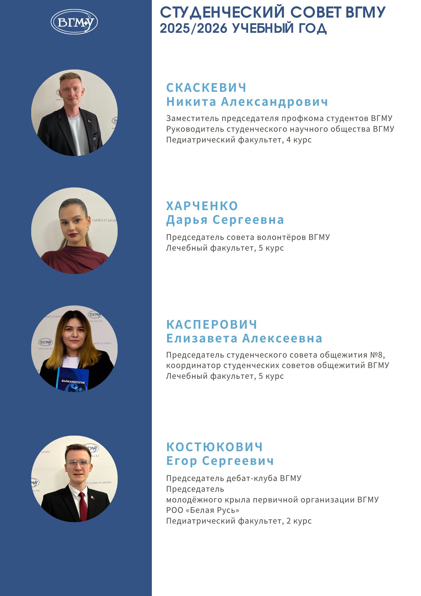 Студенческий совет ВГМУ Контакты: Председатель студенческого совета ВГМУДенисёнок Полина Владимировна+375 29 290 26 55 Instagram Telegram